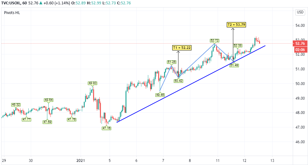 Perhaps we may see a further re-test of the current trendline as support before advancing to the higher levels. However, should this region succumb to downward selling pressure, the areas of $51.49 and $49.80 could become alternative levels to consider for levels of demand/support.